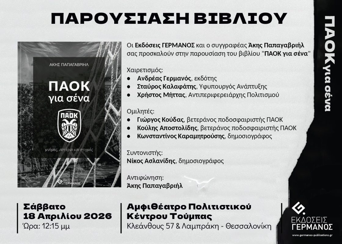 σας προσκαλούν στην παρουσίαση του βιβλίου “ΠΑΟΚ για σένα”